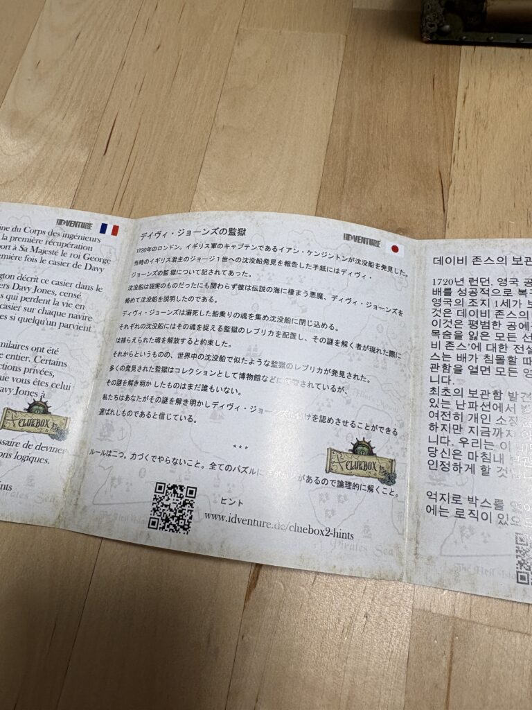 だからこそ、箱のパーツがスッと動いて、分解されて次のステップに行くときには、紙面で行う謎解きでは味わうことのできない、この謎解きならではの快感を味わうことができました。